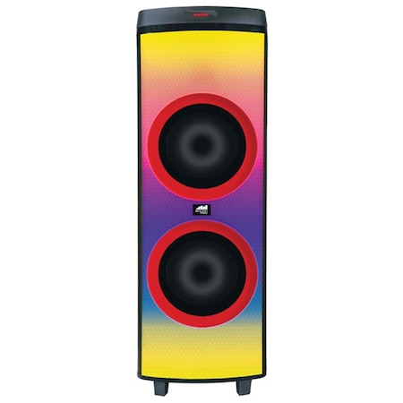 Naxa NDS-1250 Portable Dual 12″ Bluetooth Blaze Party Speaker with Full Glow Disco Lights, Up to 2.5 Hours Play Time, Wireless Microphone, FM Tuner, USB Port, MicroSD Card Slot, and 3.5mm Input, Black