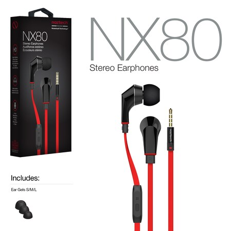 Rock Out All Day In Style! The ergonomically designed NX80 reproduces high definition, bass-driven sound without the need for batteries. The in-line microphone is acoustically tuned to filter out external noise, ensuring that the callers can hear clearly, even in the noisiest situations. With three size options of comfort-fit ear gels, you are ensured the perfect fit to seal in sound and block out ambient noise for a truly immersive audio experience. Crank it up and rock out in style! HD Stereo Sound Dynamic Bass Noise Isolation In-Line Microphone Tangle-Free Flat Cable Comfortable, Noise Isolating Fit The ear gels are soft, lightweight & flexible, so you can listen all day with zero ear fatigue. In-Line Microphone Switch between your playlist and phone calls with the built-in remote control. Tangle-Free Flat Cable The durable flat design actively resists tangles and is more resistant to fraying. High-Fidelity Stereo Sound Powerful 8mm Neodymium Drivers let you experience rich audio with powerful bass and clear highs for stunning high fidelity sound. 3 Classic Colors The color-matched ear gels and cables bring a pop of color that will complement your tech gear and express your personal style! Guaranteed Reliability Naztech products are performance tested and vetted through a rigorous quality inspection process to ensure reliability. Naztch offers friendly customer service and a Limited One Year Warranty to the original purchaser that the product shall be free of defects in design, assembly, material or workmanship. Package Contents: Earphones S/M/L Ear Gels User Manual