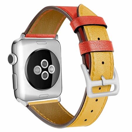 Naztech Genuine Leather Band 42mm 44mm for Apple Watch, Compatible with Watch Series 8/7 / 6 / SE / 5/4 / 3/2 / 1 [Universal Interchangeable Replacement Band Strap] - Yellow/Red