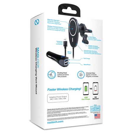 Wireless Charging Cell Phone Holder Mount - Naztech Car Air Vent Fast Wireless Charger Phone Mount [Hands-Free, Easily Install] with Adapter, Compatible for MagSafe iPhones 15/14/13/Pro & Max [15448]