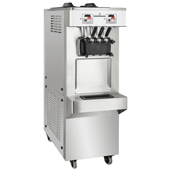 Spaceman 6378A-C-3 Soft Serve Floor Model Ice Cream Machine with Pressurized Air Pump, 2 Hoppers, and 3 Dispensers - 208-230V, 3 Phase
