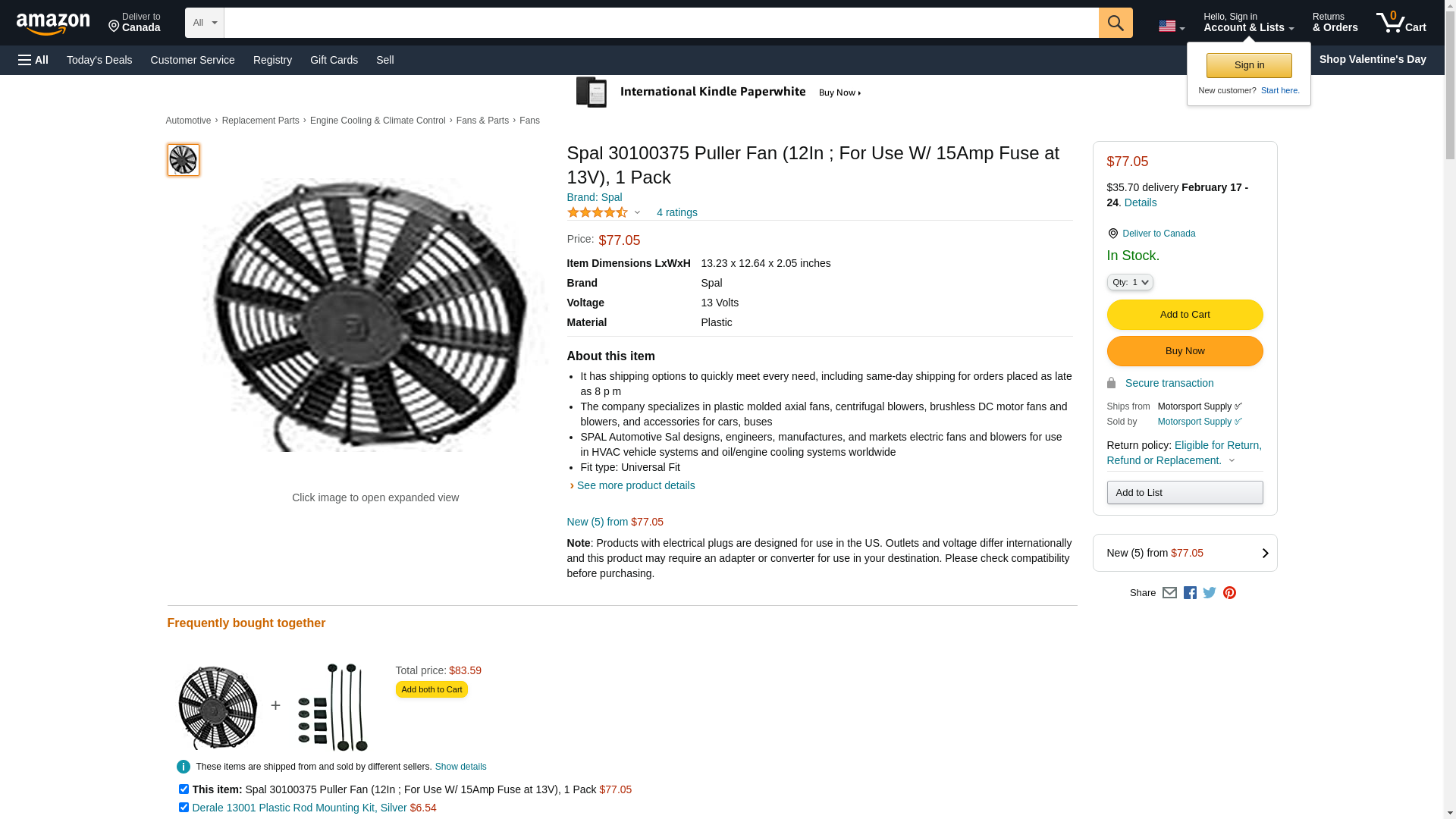 Spal 30100375 Puller Fan (12In ; For Use W/ 15Amp Fuse at 13V), 1 Pack