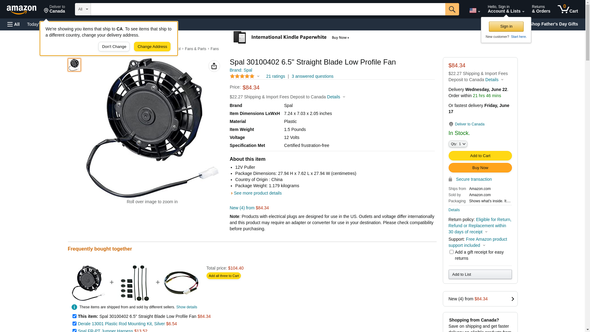 Spal 30100402 6.5 Puller Fan Straight Blade 325 CFM Product Dimension (LxWxH): 11.3x10.6x2.6