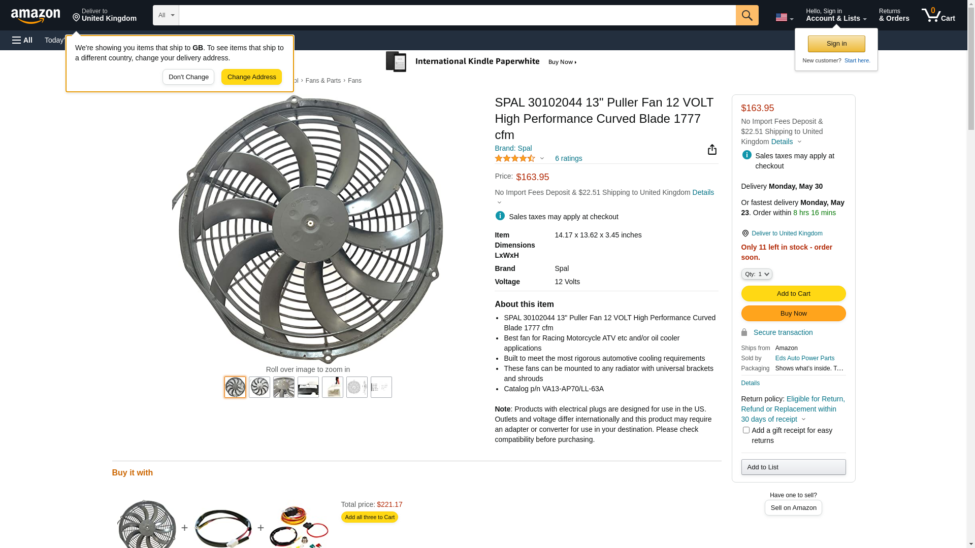 - SPAL 30102044 13" Puller Fan 12 VOLT High Performance Curved Blade 1777 cfm