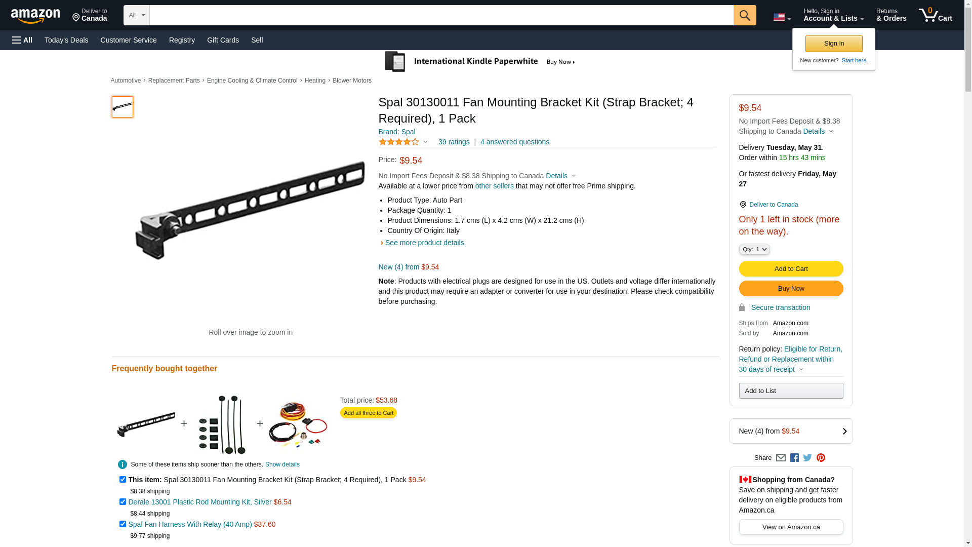 Spal 30130011 Fan Mounting Bracket Kit (Strap Bracket; 4 Required), 1 Pack