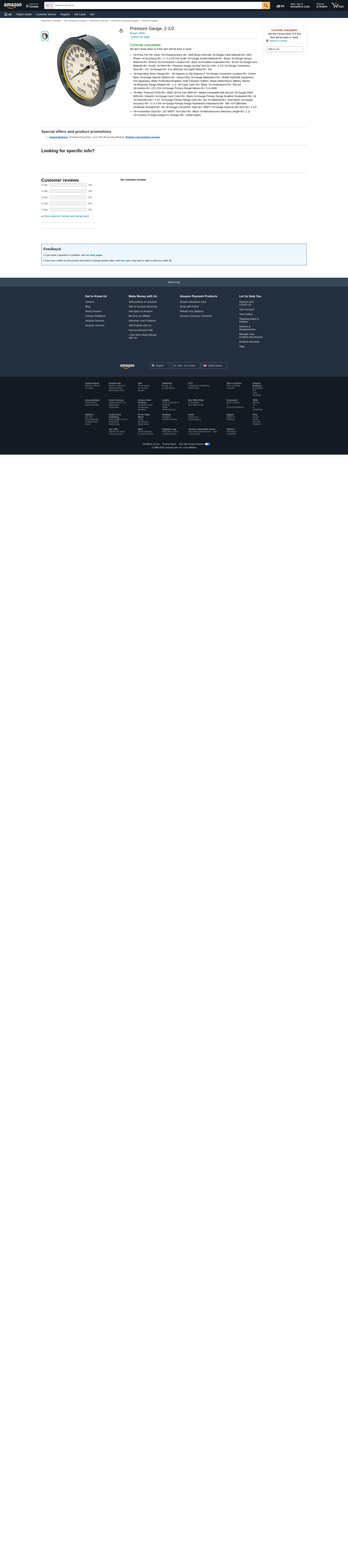 Pressure Gauge, 2-1/2