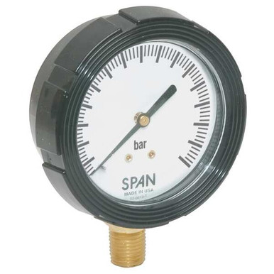 SPAN LFS-210-(1/0/15 BAR)-G LFS-210-BAR Series Liquid Filled Single Scale Industrial Vacuum Pressure Gauge, Metric Bar Range Dial, 1 Bar Vac to 15 Bar Pressure Range