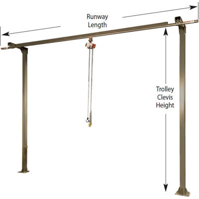 "Monorail Cranes - 250-Lb. Capacity - 10'H Trolley Clevis - 8'L Runway"