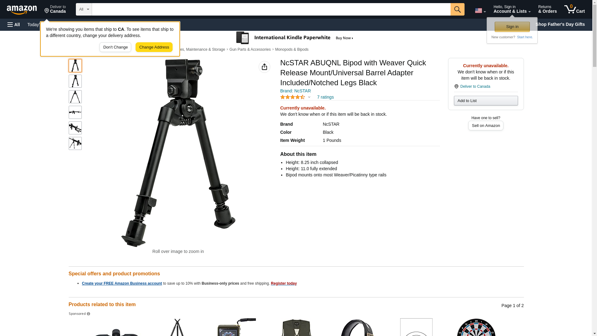 | Feature | NcStar Bipod With Weaver Quick Release Mount/ Universal Barrel Adapter Included/Notched Legs |