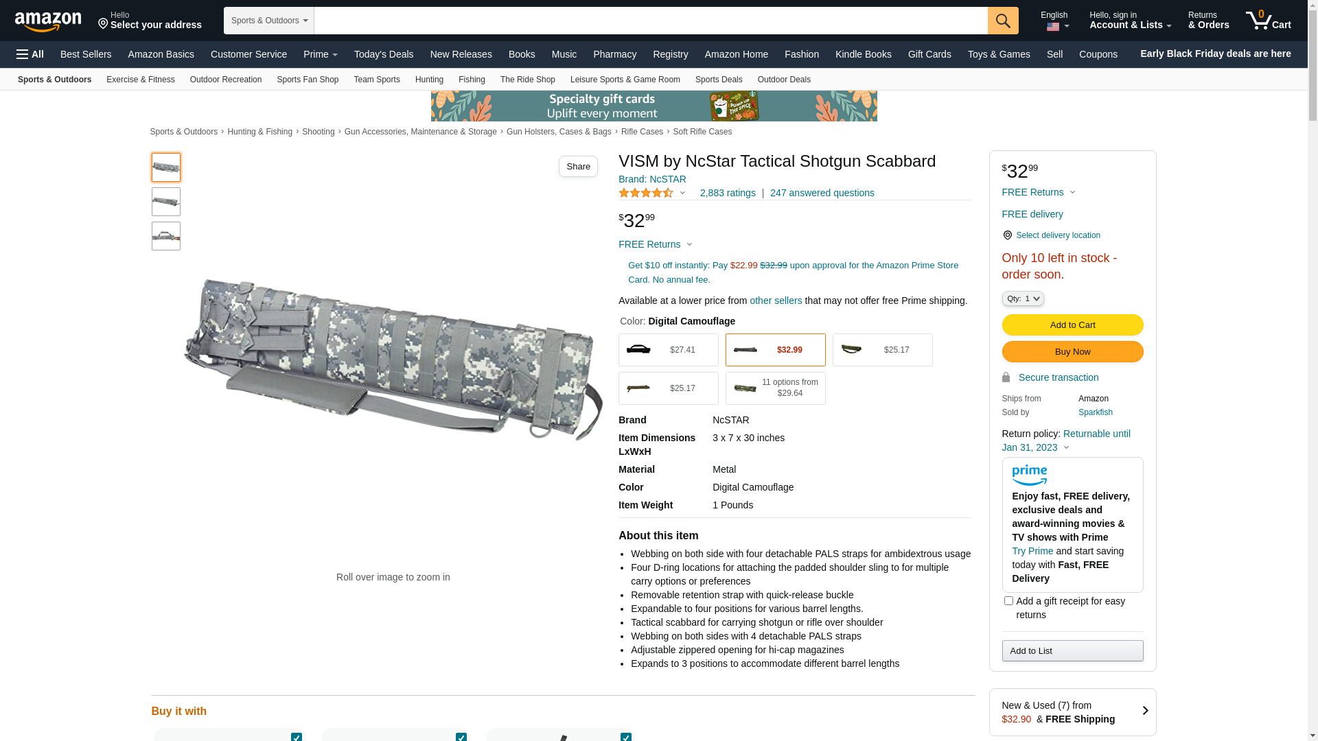 | Feature | Vism By Ncstar Tactical Shotgun Scabbard/Digital Camo |
