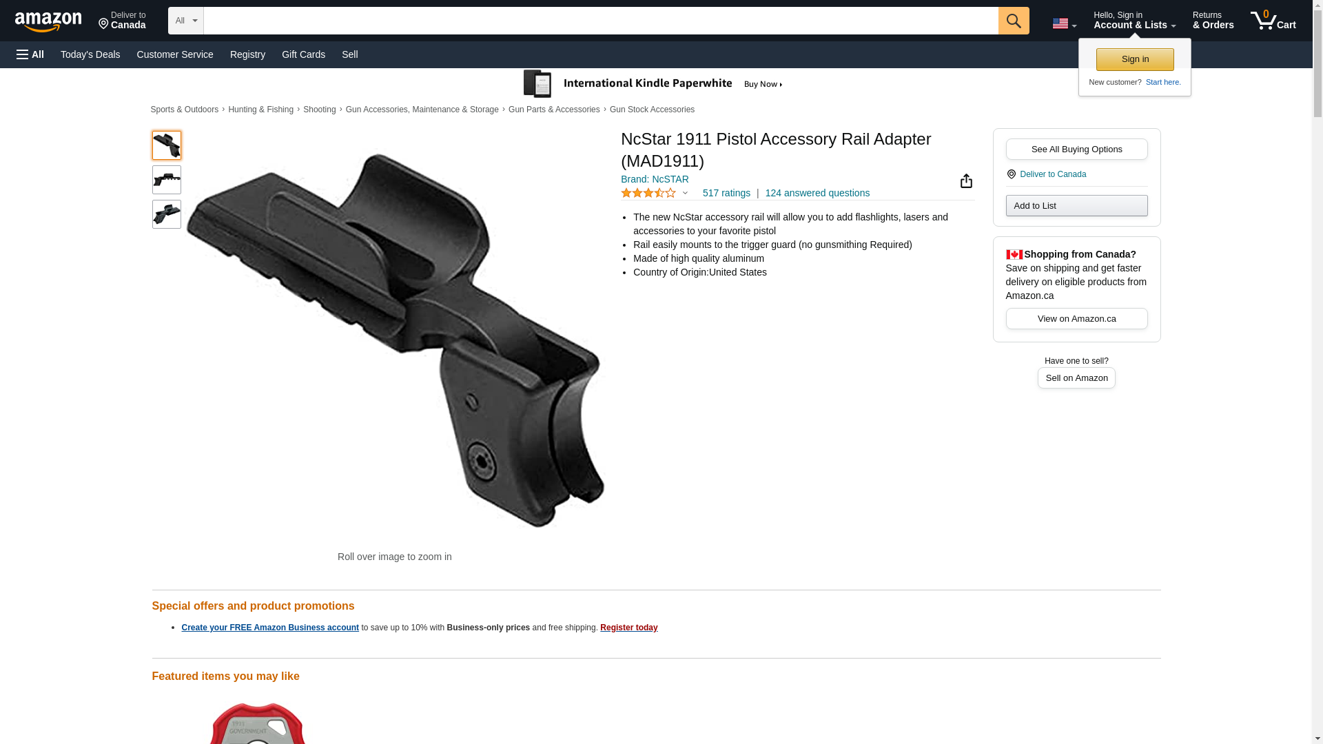 NcStar 1911 Pistol Accessory Rail Adapter (MAD1911)