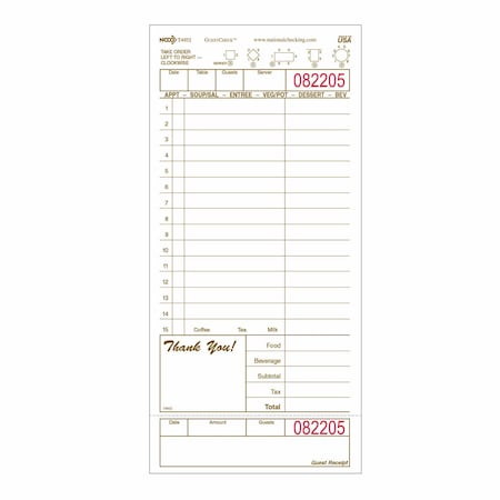 T4932SP NCC 1 Pt 15 Line Guest Check Cardboard 4.20" x 9" Tan 2000 / cs 4 Bundles / 500 SW