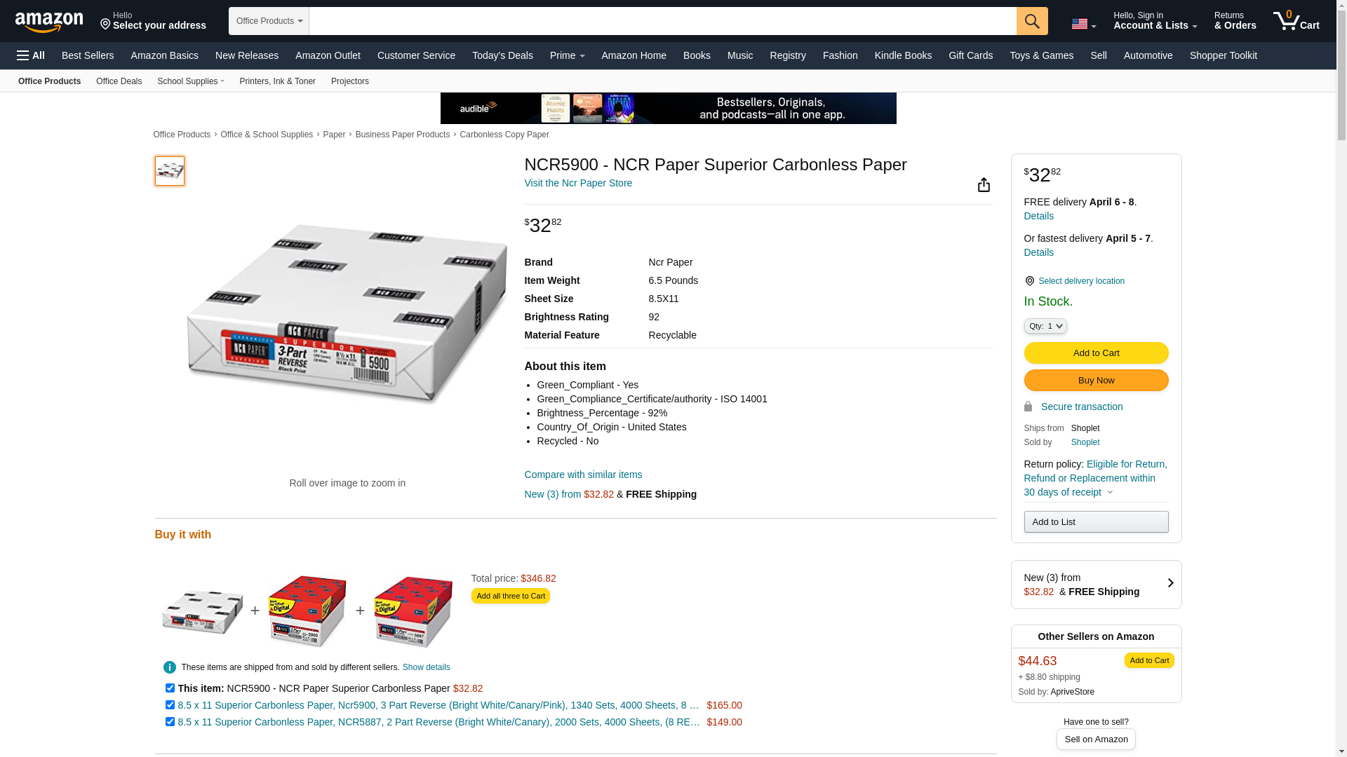 ![]() Office Dealer | NCR5900 | 500 | 1156 | 500 | 1 @ $31.22 |
