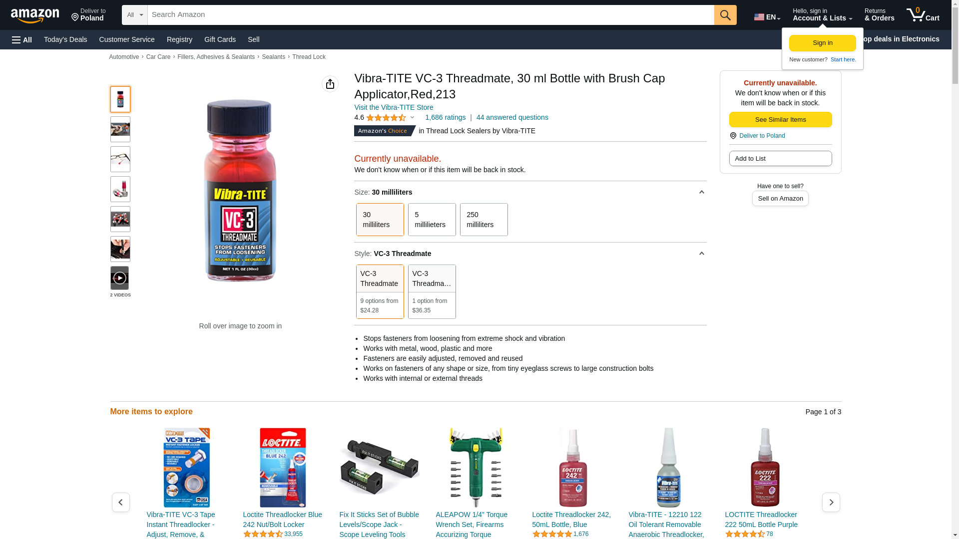 Vibra-TITE VC-3 Threadmate, 30 ml Bottle with Brush Cap Applicator