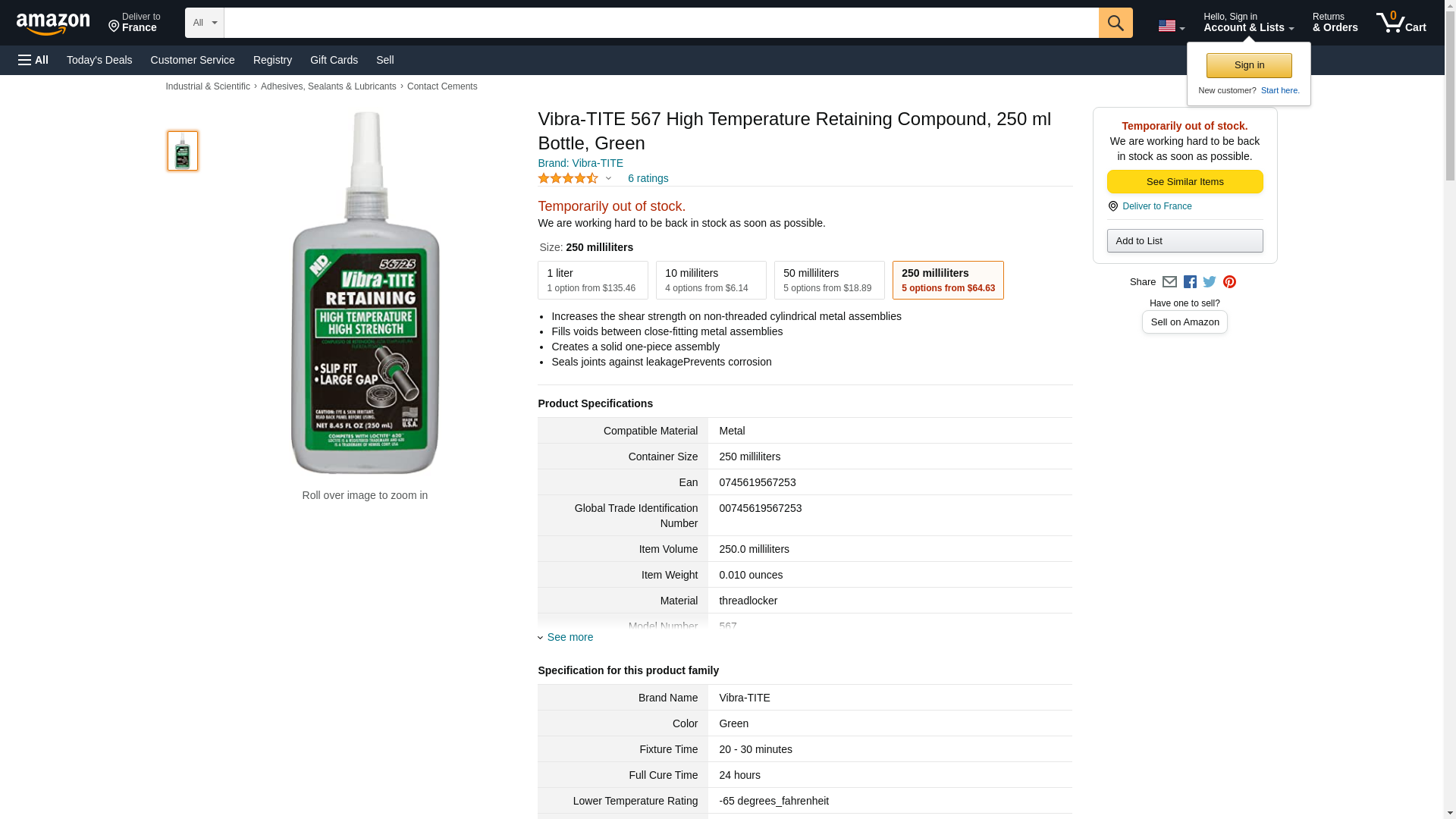 Vibra-TITE 567 High Temperature Retaining Compound, 250 ml Bottle, Green