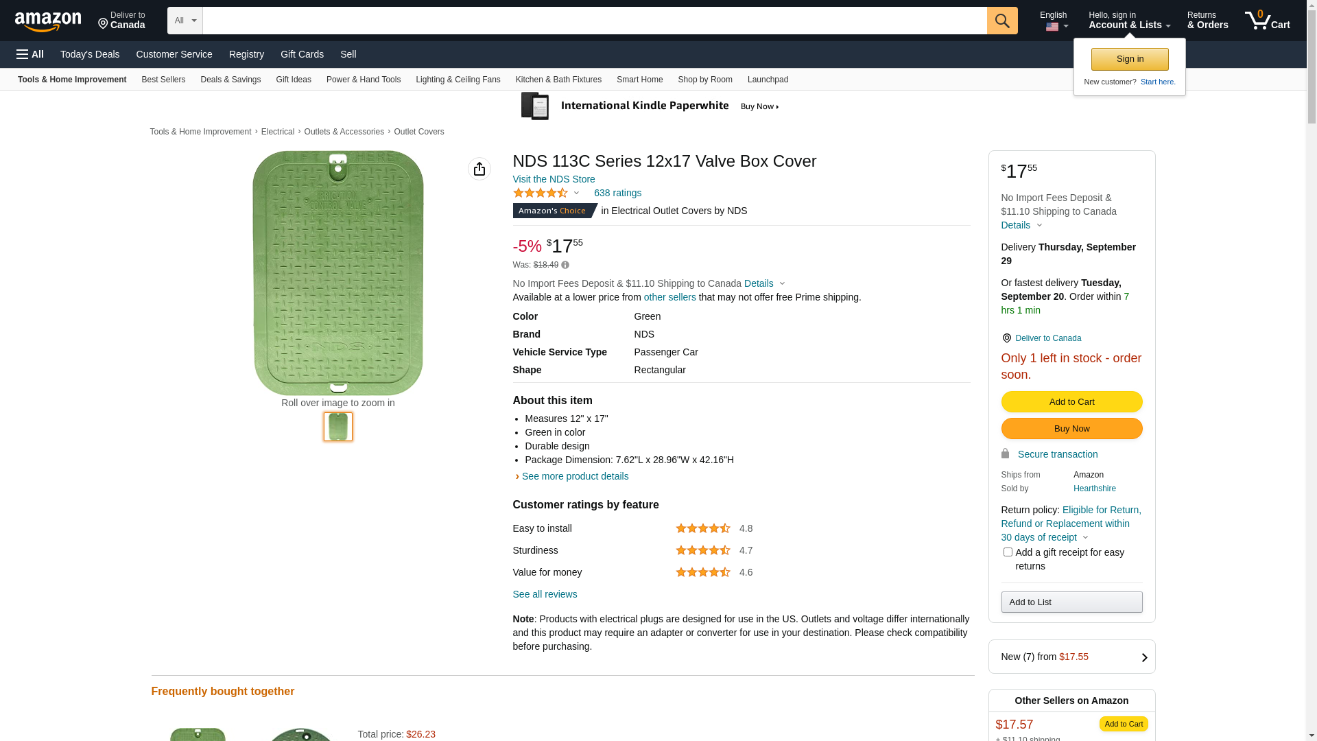 LID VALVE BOX 12X17GREEN by NDS MfrPartNo 113C