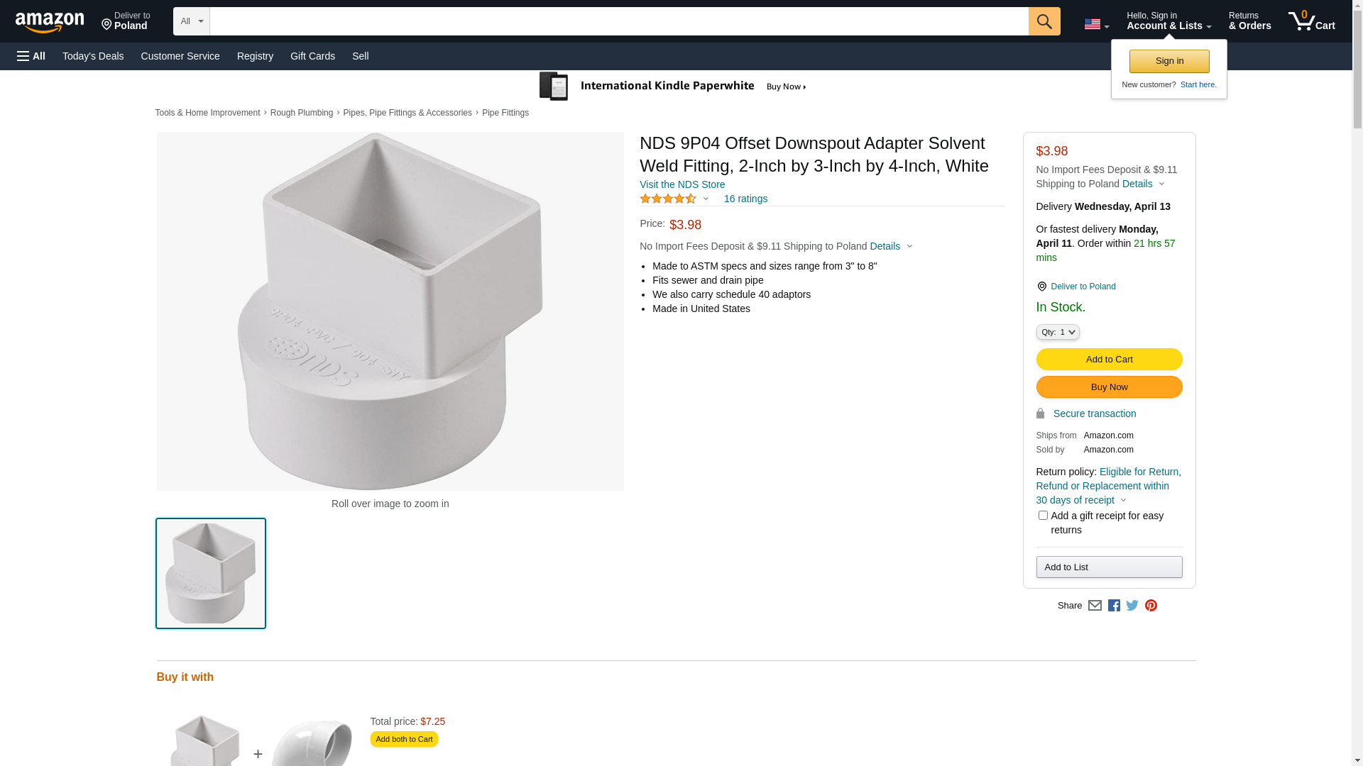 NDS 9P04 Offset Downspout Adapter Solvent Weld Fitting, 2 3 4-Inch, White, No Size, No Color