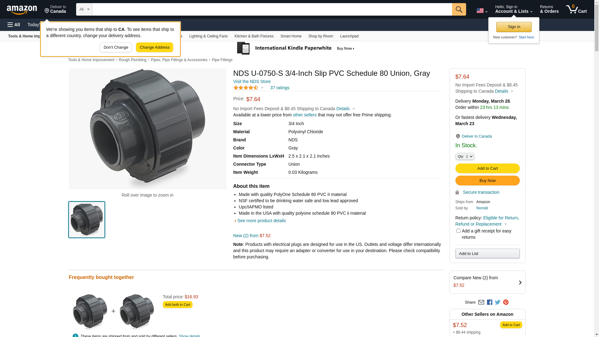 NDS U-0750-S PVC Pipe Fitting, 3/4-Inch Slip Union, Schedule 80, EPDM O-ring, Gray