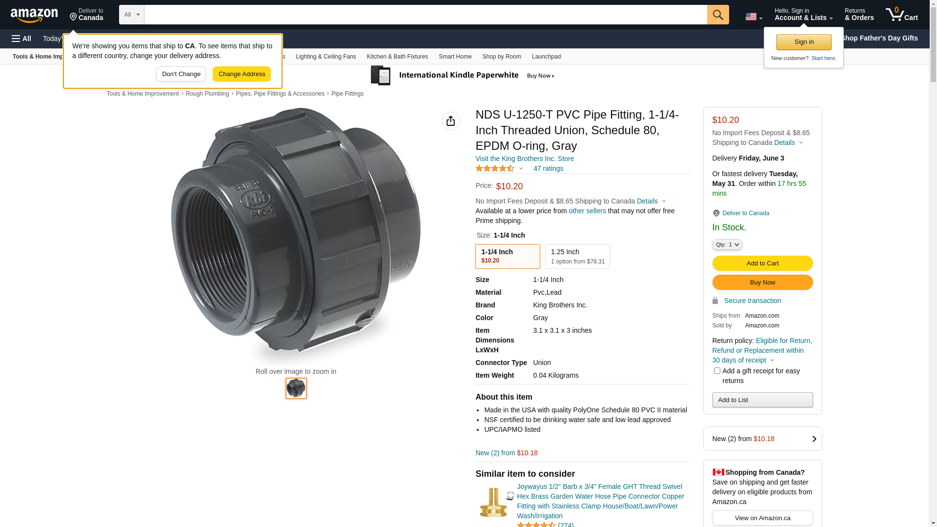 King Union Fpt X Fpt 1-1/4 " Schedule 80 Pvc Schedule 40 Schedule 80