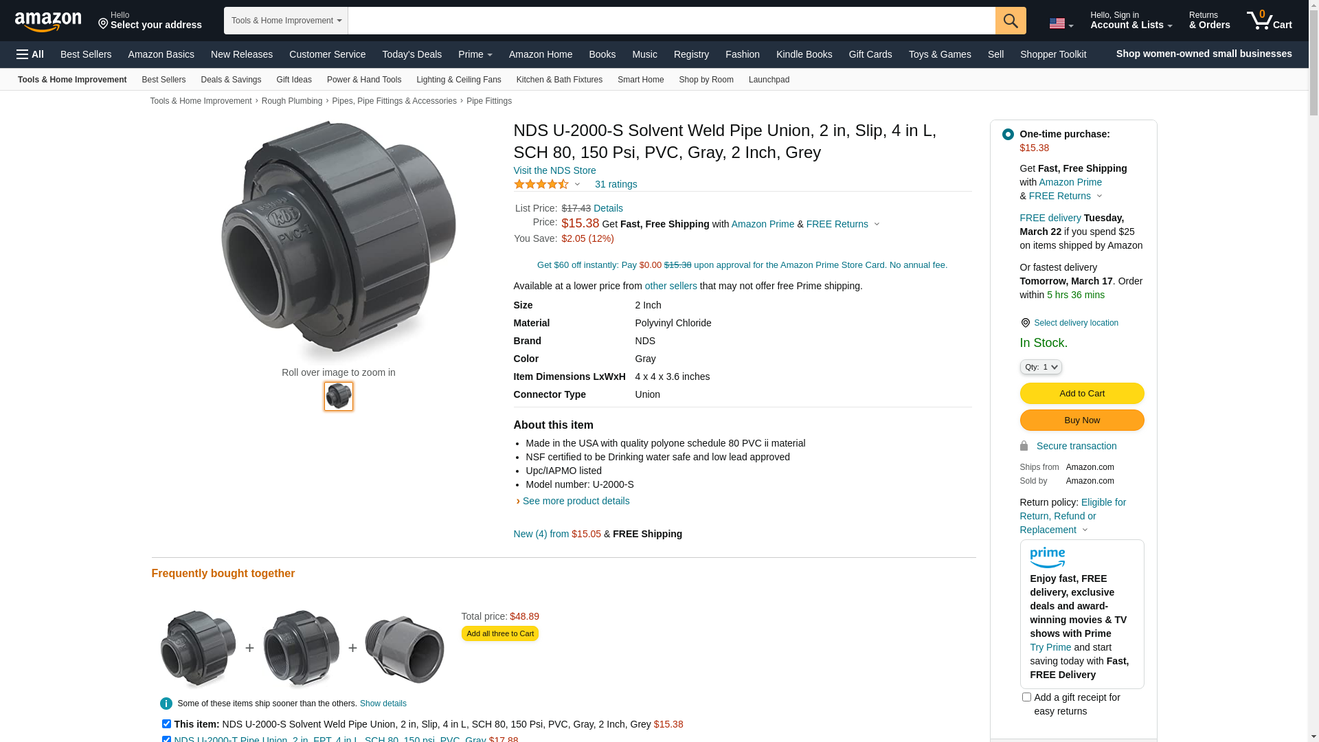 NDS U-2000-S PVC Pipe Fitting, 2-Inch Slip Union, Schedule 80, EPDM O-ring, Gray