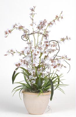 The Nearly Natural 26 in. Dancing Lady Silk Orchid Flower Arrangement helps you brighten up your favorite living area. Set in a stylish ceramic pot, this lovely arrangement features dancing lady orchids, gorgeous green leaves, grass and a hint of curly willow. Save maintenance time and effort with this beautiful artificial arrangement.