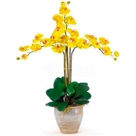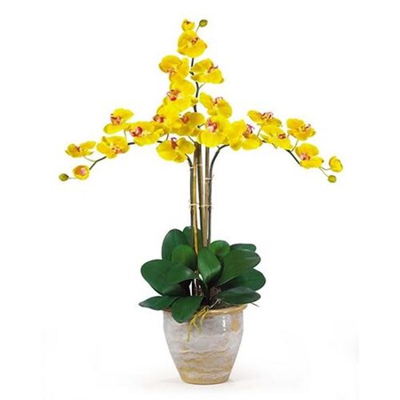 Description :Looking for the perfect orchid with absolutely no maintenance? The 27 triple stem phalaenopsis is a classic orchid to be enjoyed by all, even the most discriminating customer. Each silk plant comes with three beautiful phalaenopsis stems each with 6 flowers and 2 buds. Finished with a gorgeous glazed ceramic vase designed to coordinate with any d_cor, this beauty will bring color and life into any space. Color: Gold, Height: 27"", Vase: H 7"" W 8-1/2"Specification :Height : 27 inWidth : 23 inDepth : 23 in
