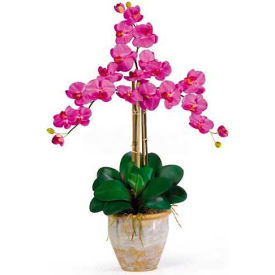 Looking for the perfect orchid with absolutely no maintenance? The 27 triple stem phalaenopsis is a classic orchid to be enjoyed by all even the most discriminating customer. Each silk plant es with three beautiful phalaenopsis stems each with 6 flowers and 2 buds. Finished with a gorgeous glazed ceramic vase designed to coordinate with any d cor this beauty will bring color and life into any space. Color: Orchid Height: 27" Vase: H 7" W 8-1/2"