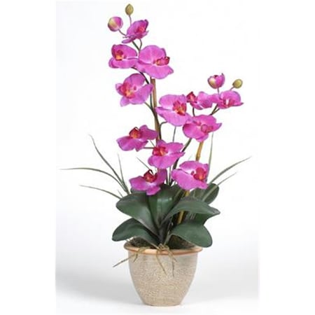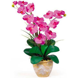 Nearly Natural - Faux Florals / Plants - 1026OR - This 25 inch double stem phalaenopsis silk orchid plant is nothing short of an explosion of color. Expertly arranged, this piece was designed to enhance any space. Each plant comes stacked with two amazing phalaenopsis stems each with 6 flowers and 2 buds. Finished with a gorgeous glazed ceramic vase this item is not to be missed. So whether you're looking for a gift or just want to perfect your decor...you're only one click away.Features two amazing stems with 6 flowers eachLush green leaves anchor this pieceShows natural looking exposed rootsSpecifications:Overall Product Dimensions: 25"" H x 15.5"" W x 12"" D