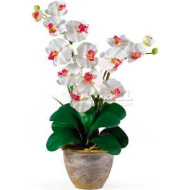 Nearly Natural - Faux Florals / Plants - 1026WH - This 25 inch double stem phalaenopsis silk orchid plant is nothing short of an explosion of color. Expertly arranged, this piece was designed to enhance any space. Each plant comes stacked with two amazing phalaenopsis stems each with 6 flowers and 2 buds. Finished with a gorgeous glazed ceramic vase this item is not to be missed. So whether you're looking for a gift or just want to perfect your decor...you're only one click away. Features two amazing stems with 6 flowers eachLush green leaves anchor this pieceShows natural looking exposed rootsSpecifications:Overall Product Dimensions: 25"" H x 15.5"" W x 12"" D
