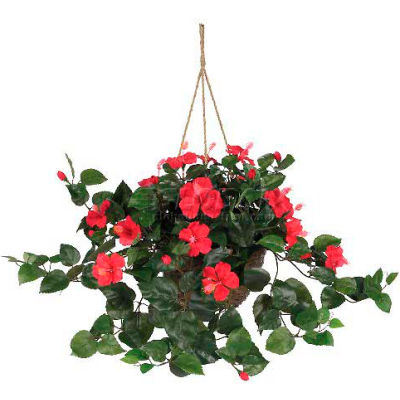 Nearly Natural 6614-RD, Red Hibiscus Hanging Basket,10.25" x 10.25" x 17.5"