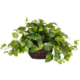 Nearly Natural 6681 15in. Pothos with Decorative Vase Silk Plant,Green,17.5" x 10.125" x 10.125"
