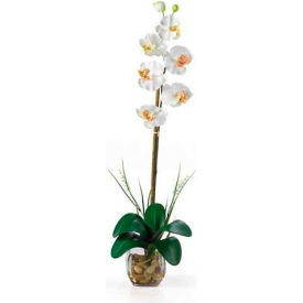 Nearly Natural 1104-CR Single Phalaenopsis Liquid Illusion Silk Flower Arrangement, Cream