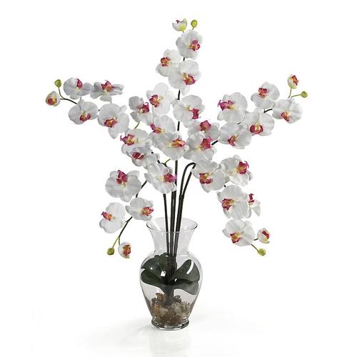 Nearly Natural 1106-WH Phalaenopsis Liquid Illusion Silk Flower Arrangement, White