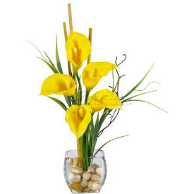 Nearly Natural Calla Lily Liquid Illusion w/Cube Yellow