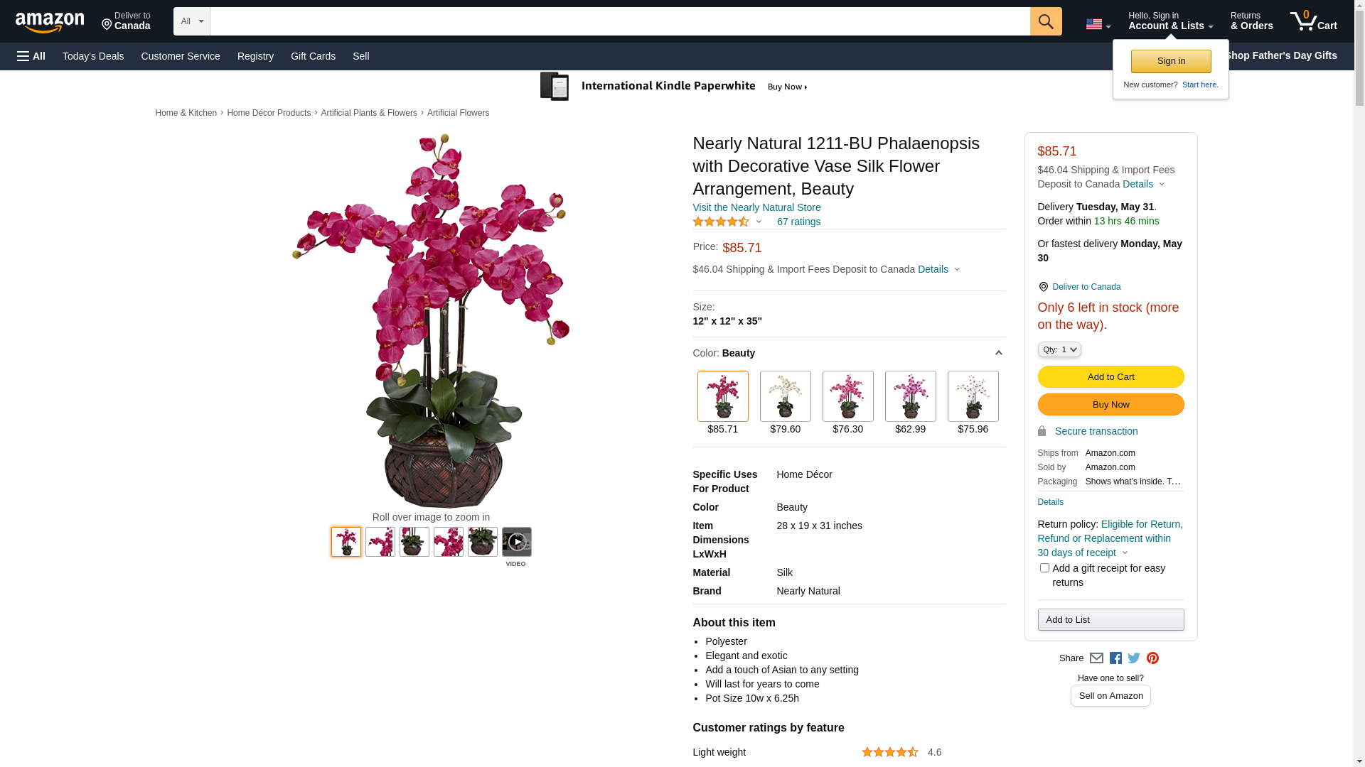 Nearly Natural 1211 Phalaenopsis Permanent Flower Beauty