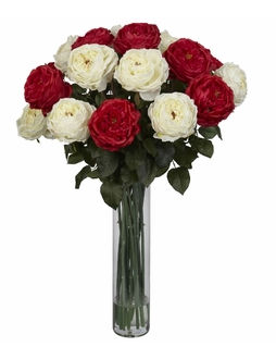 Nearly Natural 1219-RW Fancy Rose Silk Flower Arrangement, Red/White