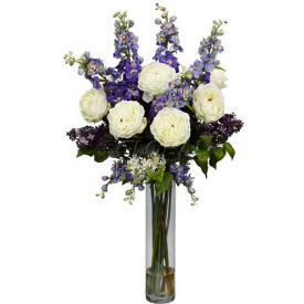 Nearly Natural 1220-PP Rose/Delphinium and Lilac Silk Flower Arrangement, Purple