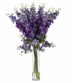 Spring has definitely sprung you?ll be thinking that year-round when you gaze upon the whimsical beauty of this lovely Delphinium arrangement. Countless stems rise out of the beautiful vase, culminating in an explosion of floral color that looks even better in person than it does in this picture. The perfect ?brighten me up? adornment for any room, this silk flower arrangement also makes a perfect gift for that sunny person in your life.