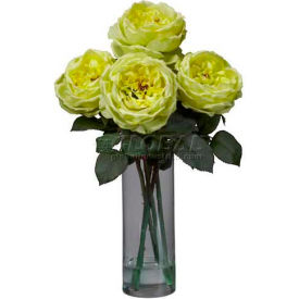 Nearly Natural 1247-YL Fancy Rose with Cylinder Vase Silk Flower Arrangement, Yellow