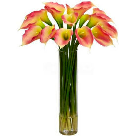 Nearly Natural Pink Calla Lilly w/Cylinder Silk Flower Arrangement