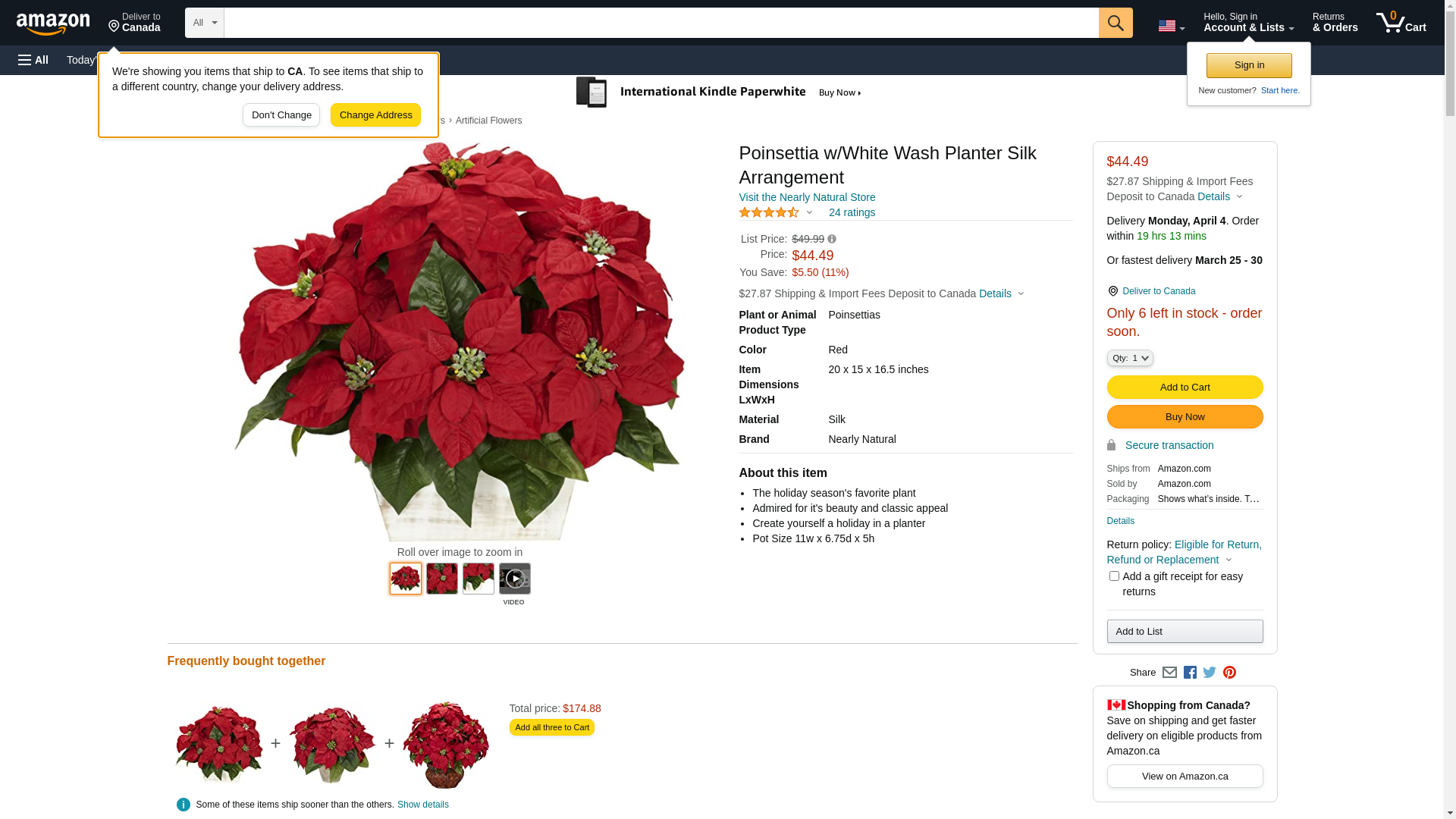Nearly Natural Poinsettia w/White Wash Planter