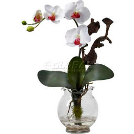 Nearly Natural - Faux Florals / Plants - 1277WH - Some flowers offer a look that seems... otherworldly, really. The beauty and symmetry are THAT perfect. This mini Phal is one such offering. With lush greenery, twisting stem, and a bloom that gently cascades, this is a piece that will command attention, no matter where you display it. Comes complete with a beautiful fluted bowl w/ faux water. Beauty that is otherworldlyLush greenery and one perfect stemWill last for years to comeSpecifications:Overall Product Dimensions: 15"" H x 11"" W x 6"" D