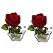 Nearly Natural 1285-S2 Rose with Square Vase Silk Flower Arrangement, Red, Set of 2