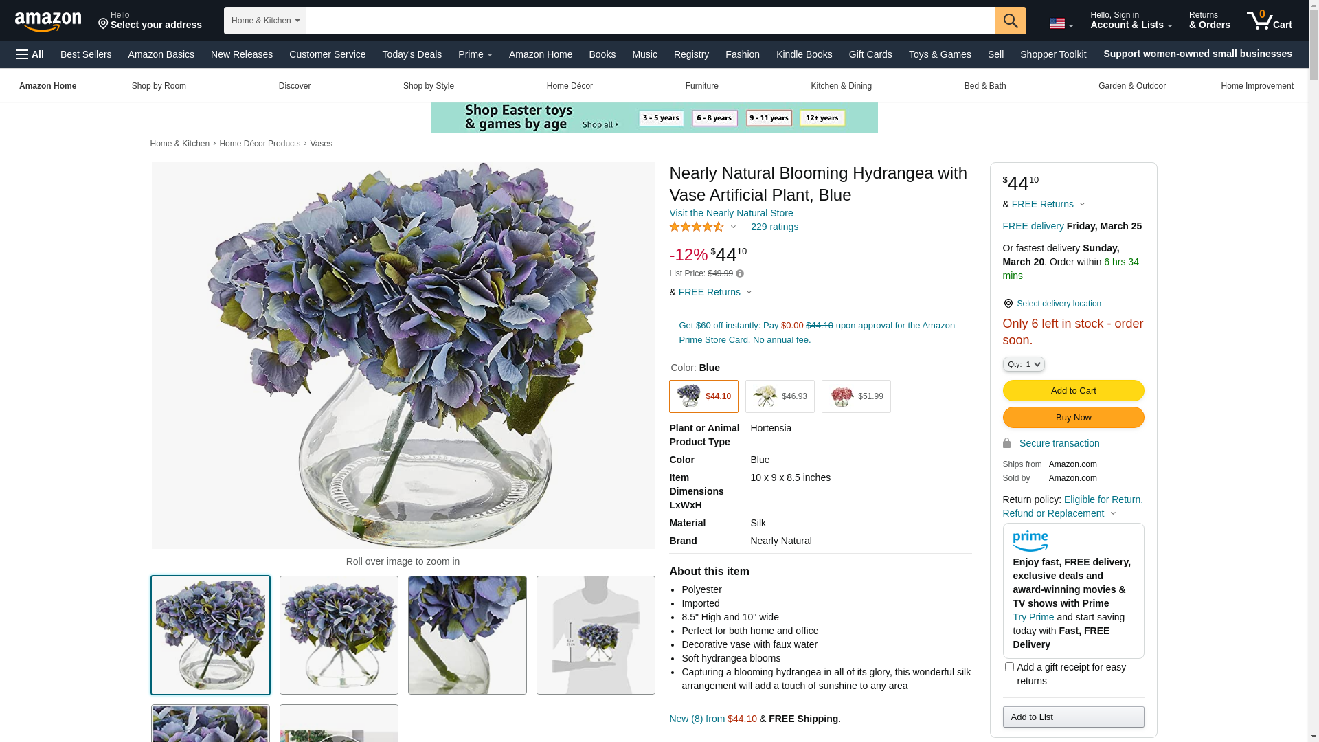 Nearly Natural 1356-BL Blooming Hydrangea with Vase, Blue