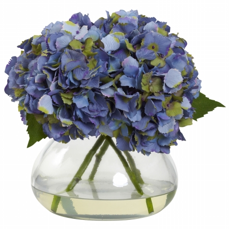 Nearly Natural Large Blooming Hydrangea w/Vase Blue