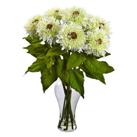 Nearly Natural 1360-WH Sunflower Arrangement with Vase, White