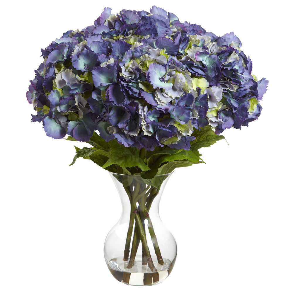 Nearly Natural 23in Large Hydrangea w/Vase Silk Flower Arrangement Blue