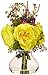 Nearly Natural 14.5in Rose and Morning Glory Arrangement with Vase Yellow