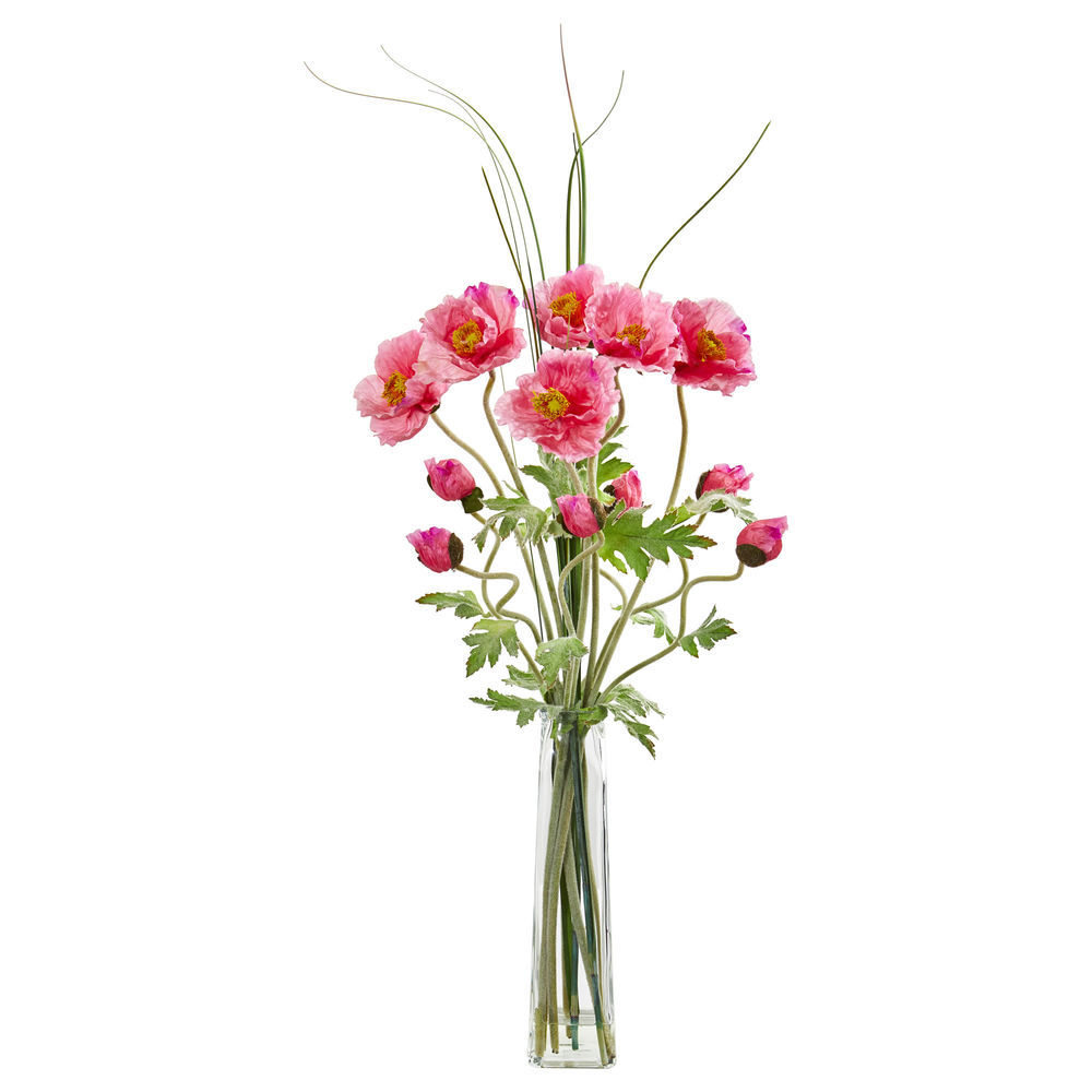 Poppy and Grass Artificial Arrangement With colorful blooms as the centerpiece this poppy and grass artificial arrangement also features lifelike leaves on the thin stems and tall grass to accent the beautiful poppy flowers Coming in a pyramid vase you could place one on each of your night stands for a bright unified feel in your master bedroom Or arrange one next to the welcome plaque at service desk for a cheerful feel Specifications. Color Pink. Height 36 in. Depth 13 in. Width 13 in. Pot Dimension 125 H x 3 W x 3 D. Weight 42 lbs