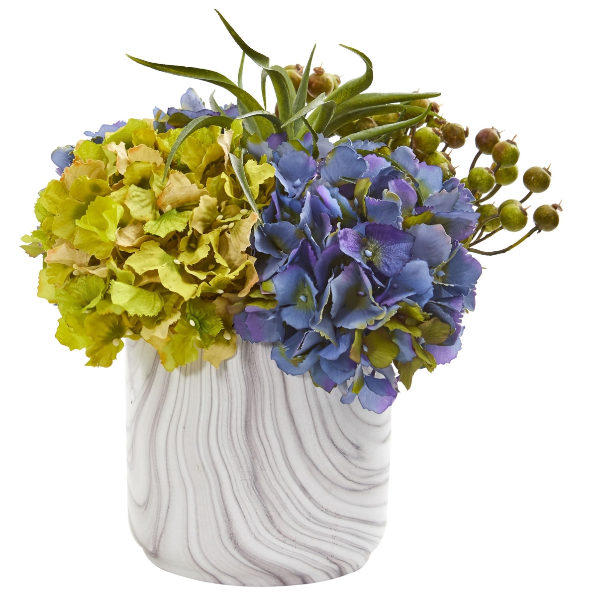 Nearly Natural 11in Hydrangea and Berries Arrangement in Marble Vase